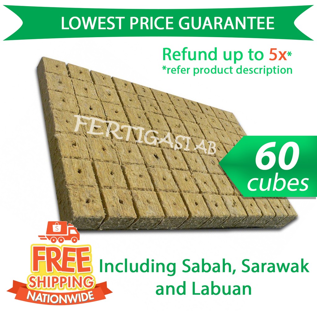 Grade A 60 Cubes Rockwool 3cmx3cmx4xm Seedling Semai Benih